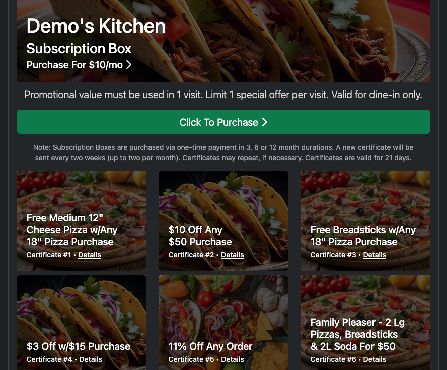 For example, you could offer a Chips & Salsa subscription box, where a customer can pay $100 and get free chips & salsa every week for a year.